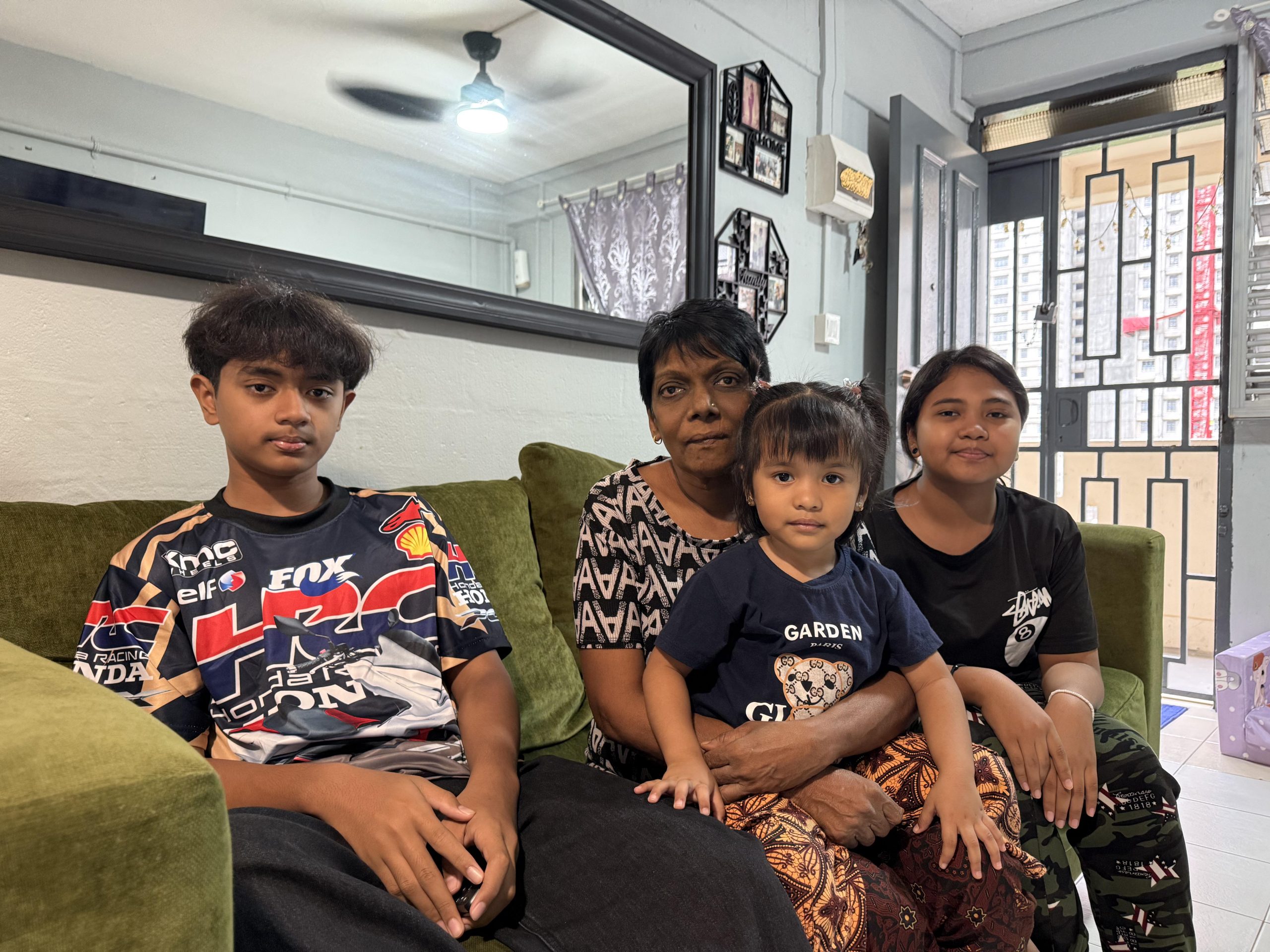At 59, Mdm Esah has taken on a responsibility few expect at her age. She is the main caregiver to her three grandchildren — Ryan (13), Fellysha (11), and little Rysah (3). Due to family circumstances, the children have been under their grandmother’s care for most of their lives. For them, home has always been their grandmother — the person they call mama.