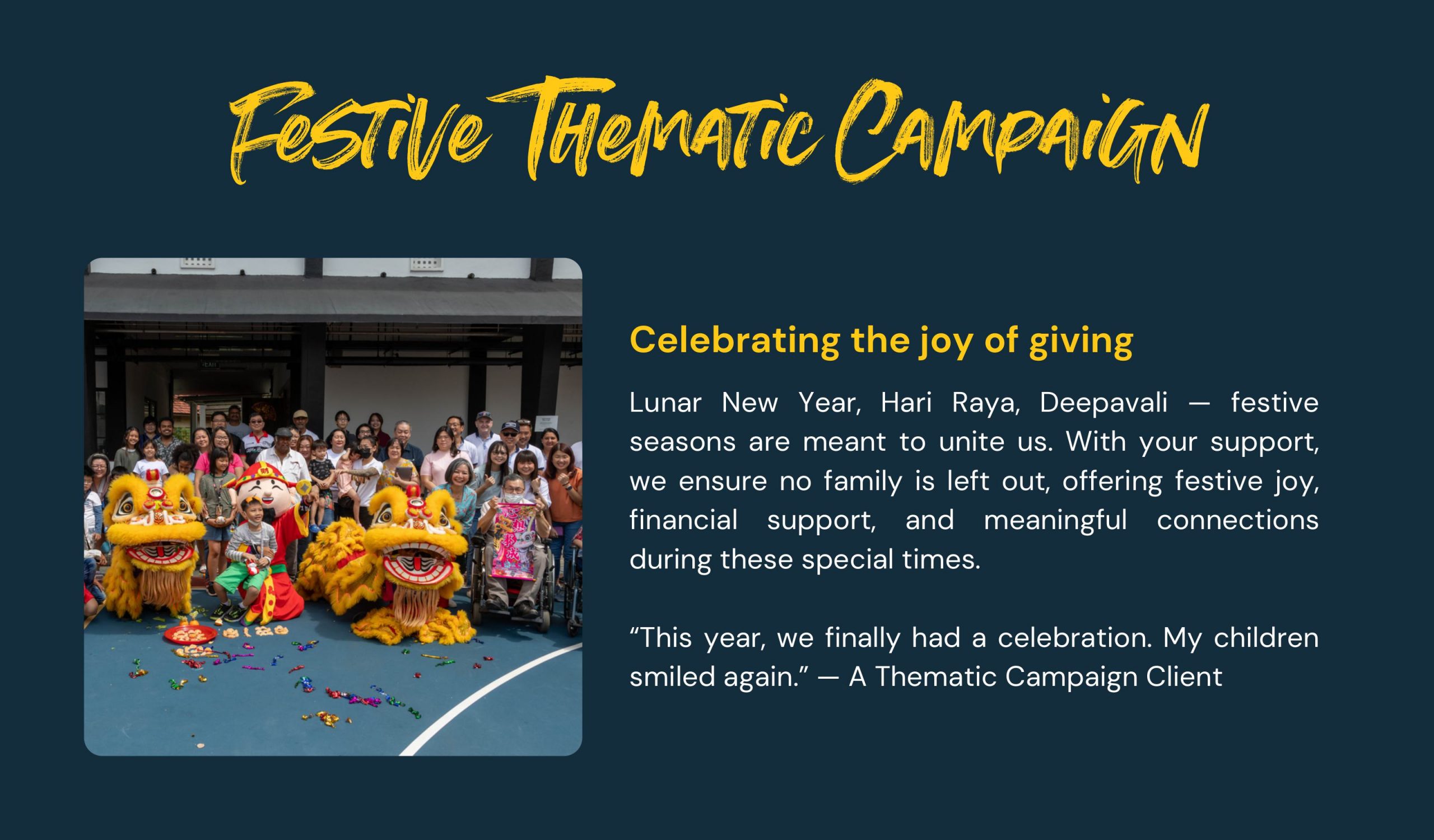 We are looking to raise $250,000 by 28th February 2026 to be eligible for matching by the Tote Board Enhanced Fundraising Scheme (EFR). Every act of giving, no matter how small, ripples out to touch countless lives. Every dollar helps us keep the lights on so we can continue to serve Singapore’s most vulnerable communities.
