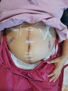 She has already undergone major surgery in Singapore to remove the tumour, measuring approximately 20cm by 16 cm. The procedure was extensive. Doctors performed a full hysterectomy and removed cancerous tissue found in her abdomen, pelvis, and upper chest.